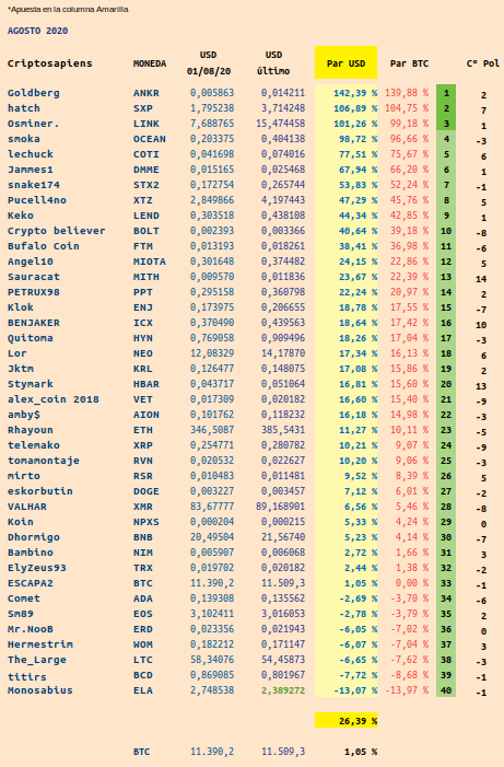 Esperaba estar casi arriba, ya va por 11.60€, buenísima subida y jodido por no haber comprado muchísimas más cuando las pille a 1.92 y 2€... Porka miseria jajajajaCripto Believer ya segundo, con BOLT, junto al master Goldberg y su ANKR, Osminer. avec le grand LINK, pisandole las chanclas al líder virtual @smoka, ya en cabeza
