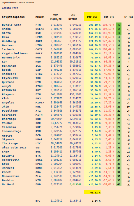 Bambino me has fallado, habiamos dicho que te quedabas con el verde esperanza!Pues el Gran Bufalo Coin, ha subido 4 posiciones y se lleva el agua con el gato dentro