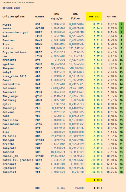Por cierto...Koin? quien es Koin? jajaja en cabeza con un 149%!!!! Benji el segundo, y titirs tercero