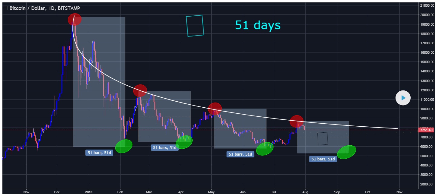 Veremos a ver si se repite el patrón... según esto, la segunda semana de septiembre tocaría fondo y sería el punto ideal para entrar antes de que empiece a subir de nuevo, quién sabe si esta vez de verdad.... o hasta el día 51. :cool: