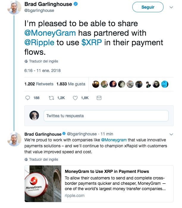 Menudo bajón ha pegado el Ripple del domingo al miércoles: de $3.40 a $1.96 ! Hoy se está recuperando un pelín ($2.08 ahora mismo) pero vaya tela, pa acojonarse un poco.