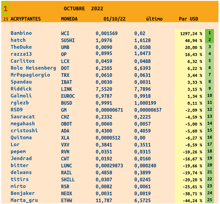 Pues si. Bambino es el gran ganador con WCI y un....1297,24%!!!