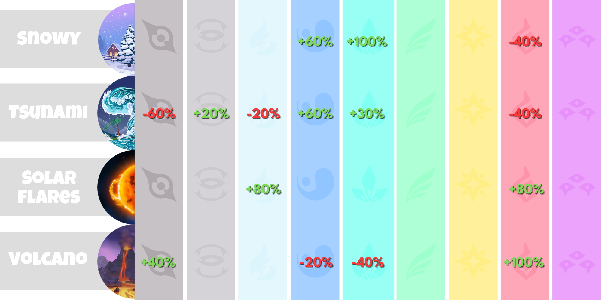 ❖ Hay 4 temporadas y 25 eventos climáticos en el modo Granja. Cada evento afecta la productividad de sus plantas / árboles.