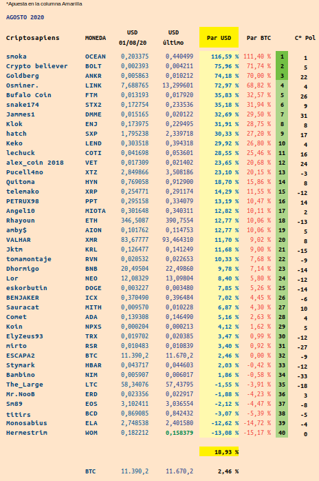 Esperaba estar casi arriba, ya va por 11.60€, buenísima subida y jodido por no haber comprado muchísimas más cuando las pille a 1.92 y 2€... Porka miseria jajajajaCripto Believer ya segundo, con BOLT, junto al master Goldberg y su ANKR, Osminer. avec le grand LINK, pisandole las chanclas al líder virtual @smoka, ya en cabeza