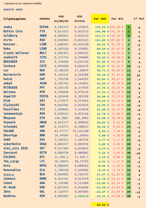 Goldberg ha realizado un quiebre y ha subido encima del cajon con ANKR , pero muy seguido por Hatch (+7)