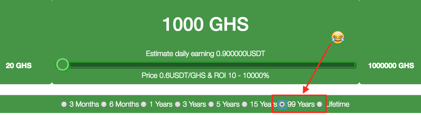El contrato mínimo (1000GHs) cuesta 62$, así que en Units hoy cuesta 620. Proporciona 0,90$ al día, así que "minando" Units hoy proporcionaría 9 moneditas al día. Serían necesarios casi 70 días de minado para poder reinvertir.